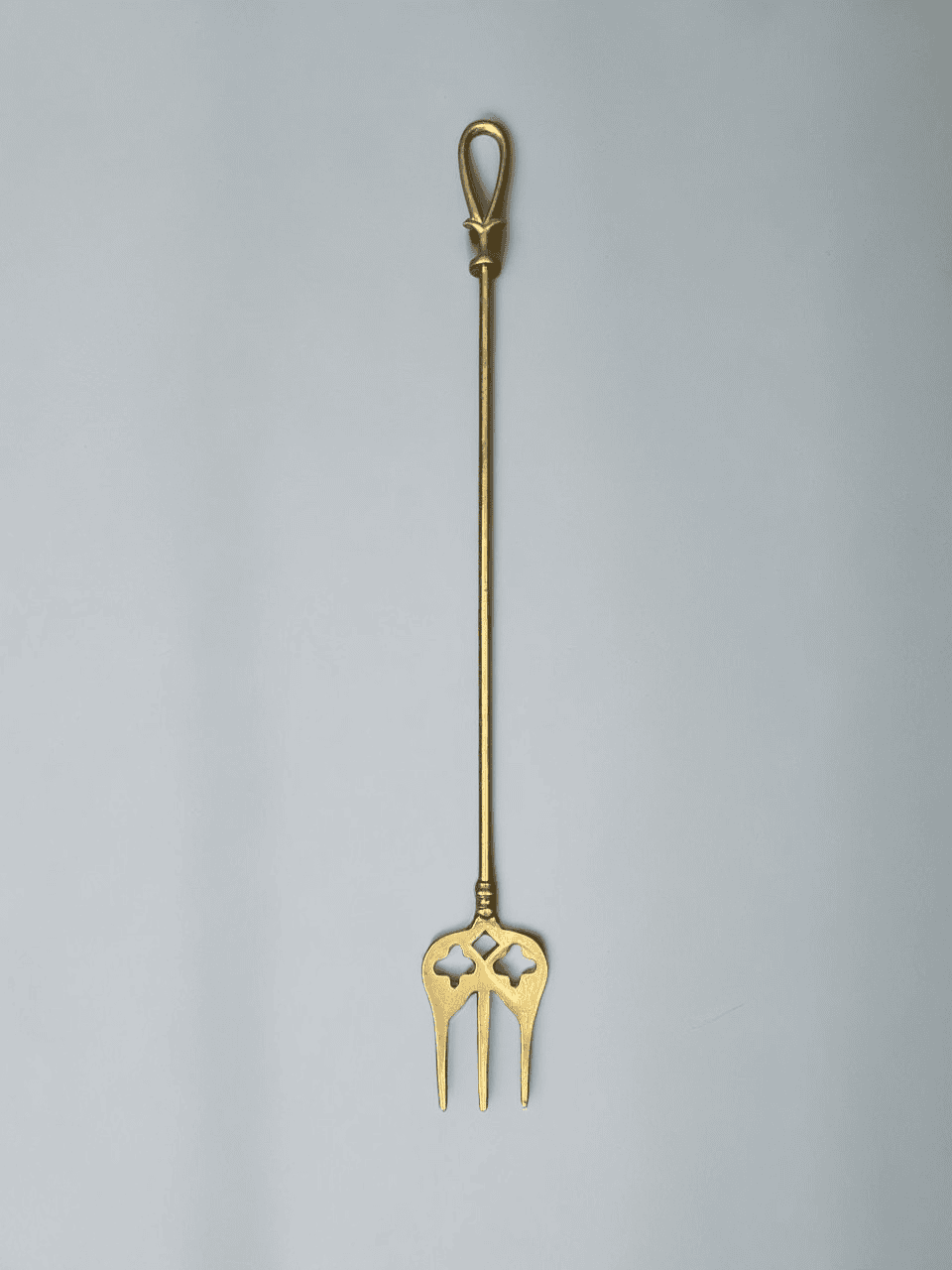 Цей набір включає основні інструменти, які необхідні для догляду за каміном: виделка з гачком (5.5 х 46 см) — універсальний інструмент, який поєднує дві функції. Виделка дозволяє переміщати дрова у вогнищі, тоді як гачок стане в пригоді для маніпуляцій із жаром, забезпечуючи рівномірне горіння. Кожен елемент комплекту створений з акцентом на практичність, довговічність і витонченість.