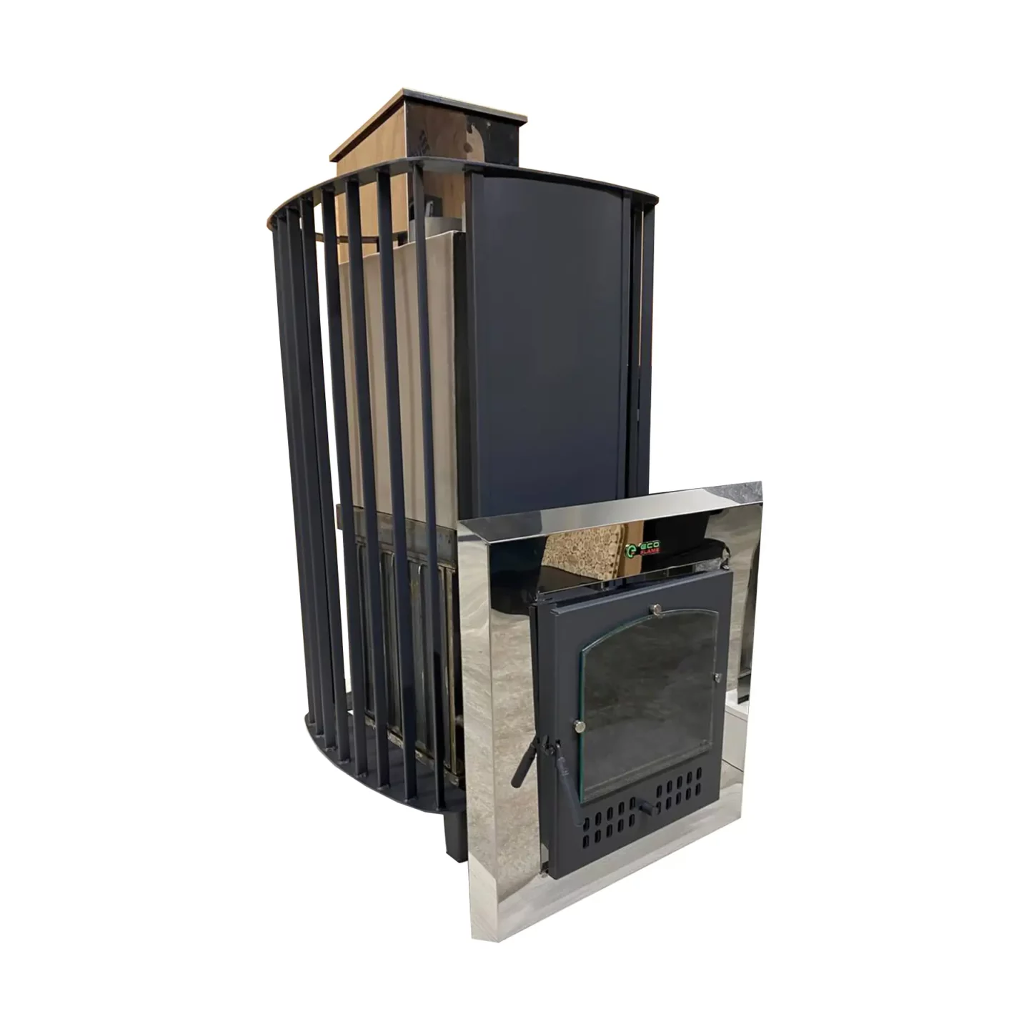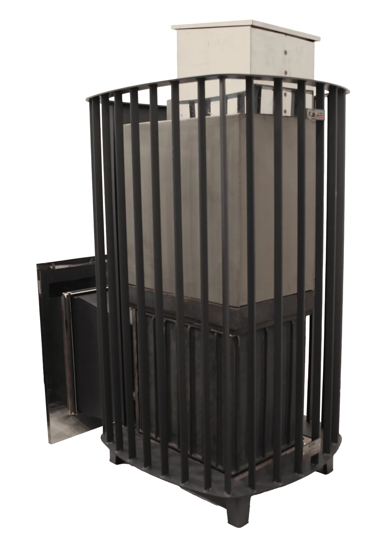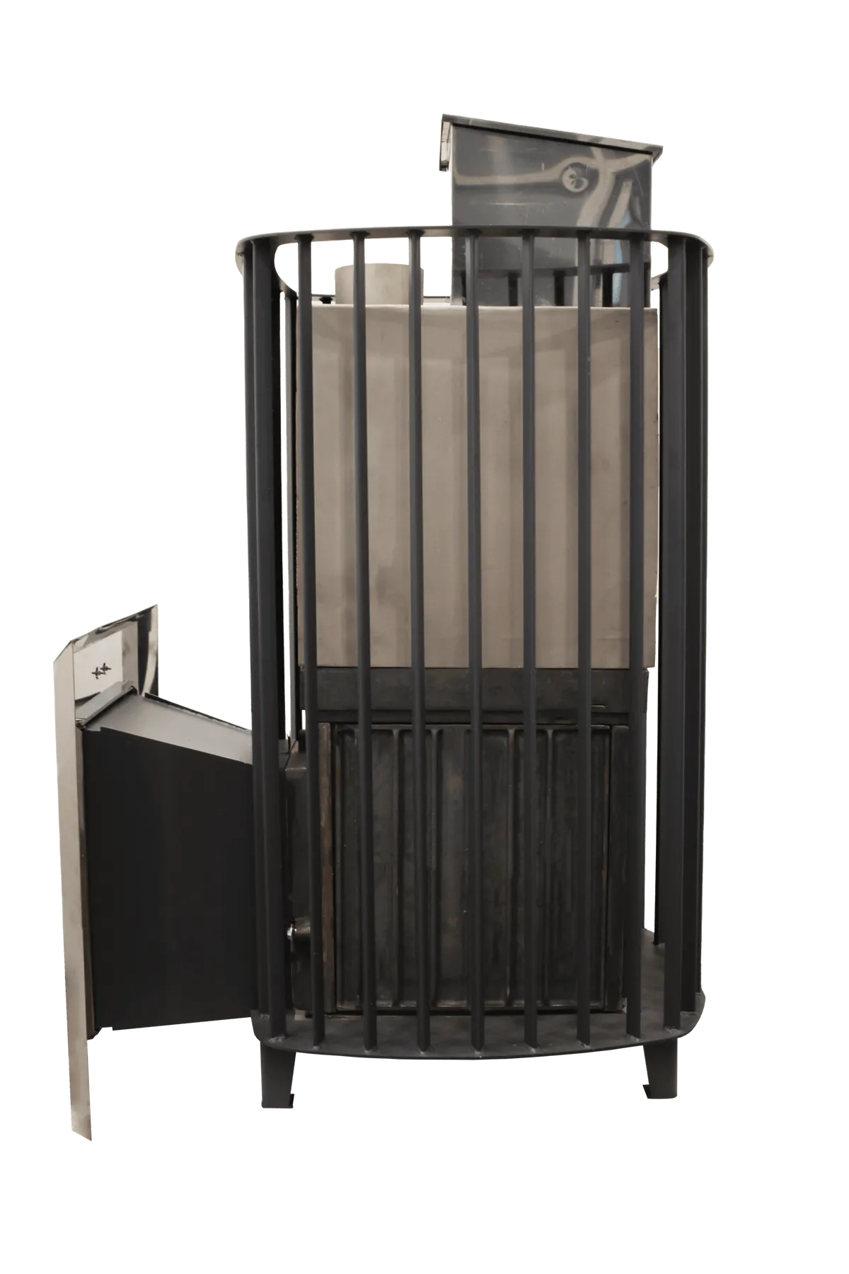 За якість закритої кам’янки печі відповідає нержавіюча феритна сталь марки AISI439, місткість каменів закритій частині становить 90 кг, завдяки чому на виході отримуємо легкий дрібнодисперсний пар.