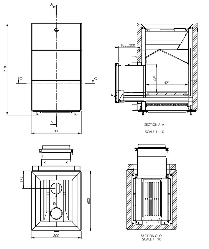- Топка печі виконана з жаротримкого вуглецевого металу європейського прокату, що добре протистоїть високим температурам і запобігає прогоранню печі протягом багатьох років.