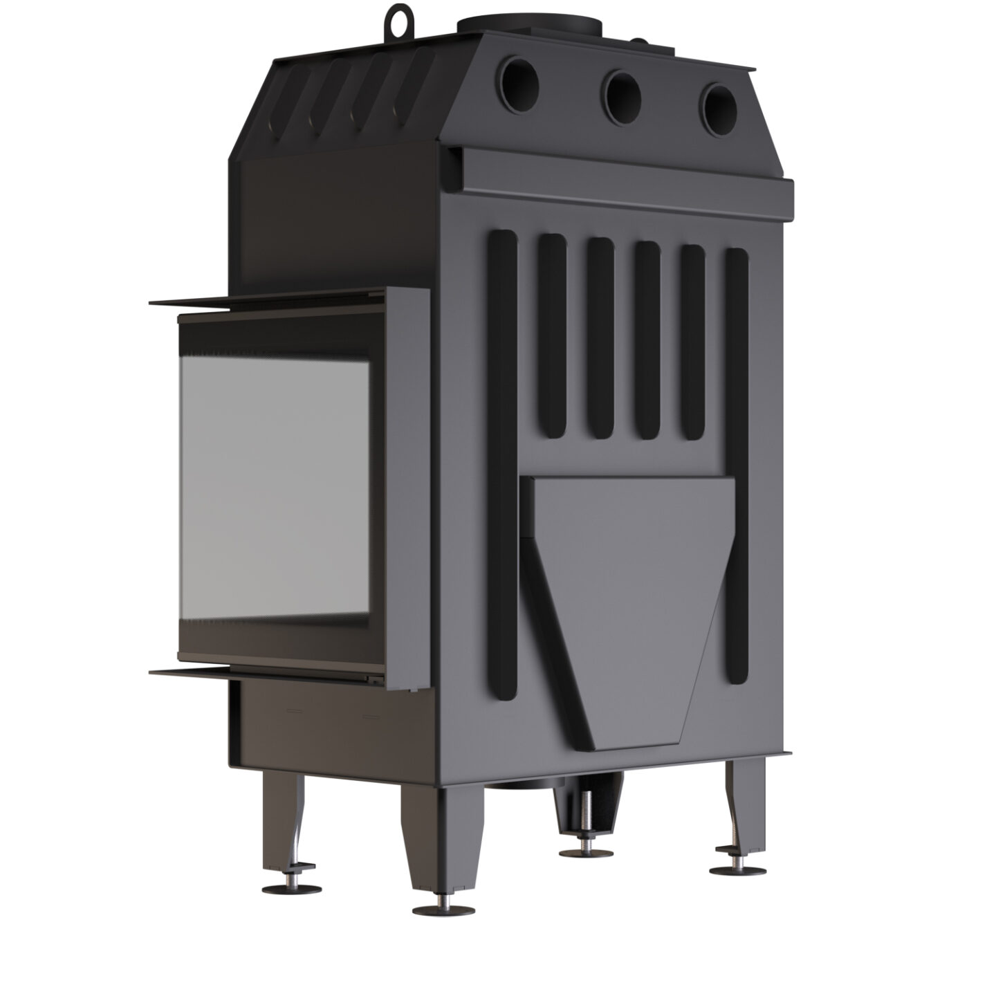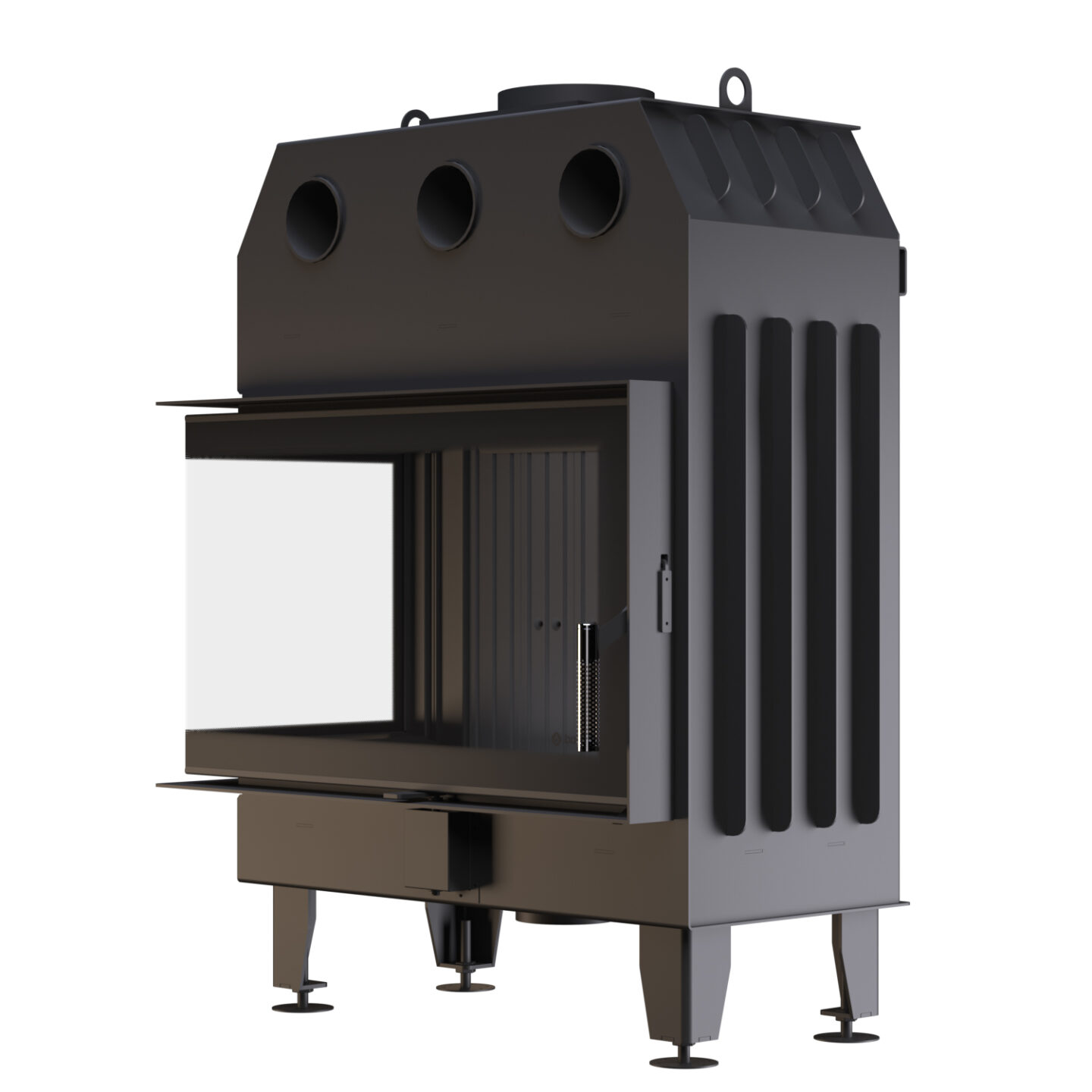 Кутове скло Schott Robax (4 мм): Надійне німецьке скло, стійке до температур до 760°C, що забезпечує безпеку та чіткий огляд полум’я.