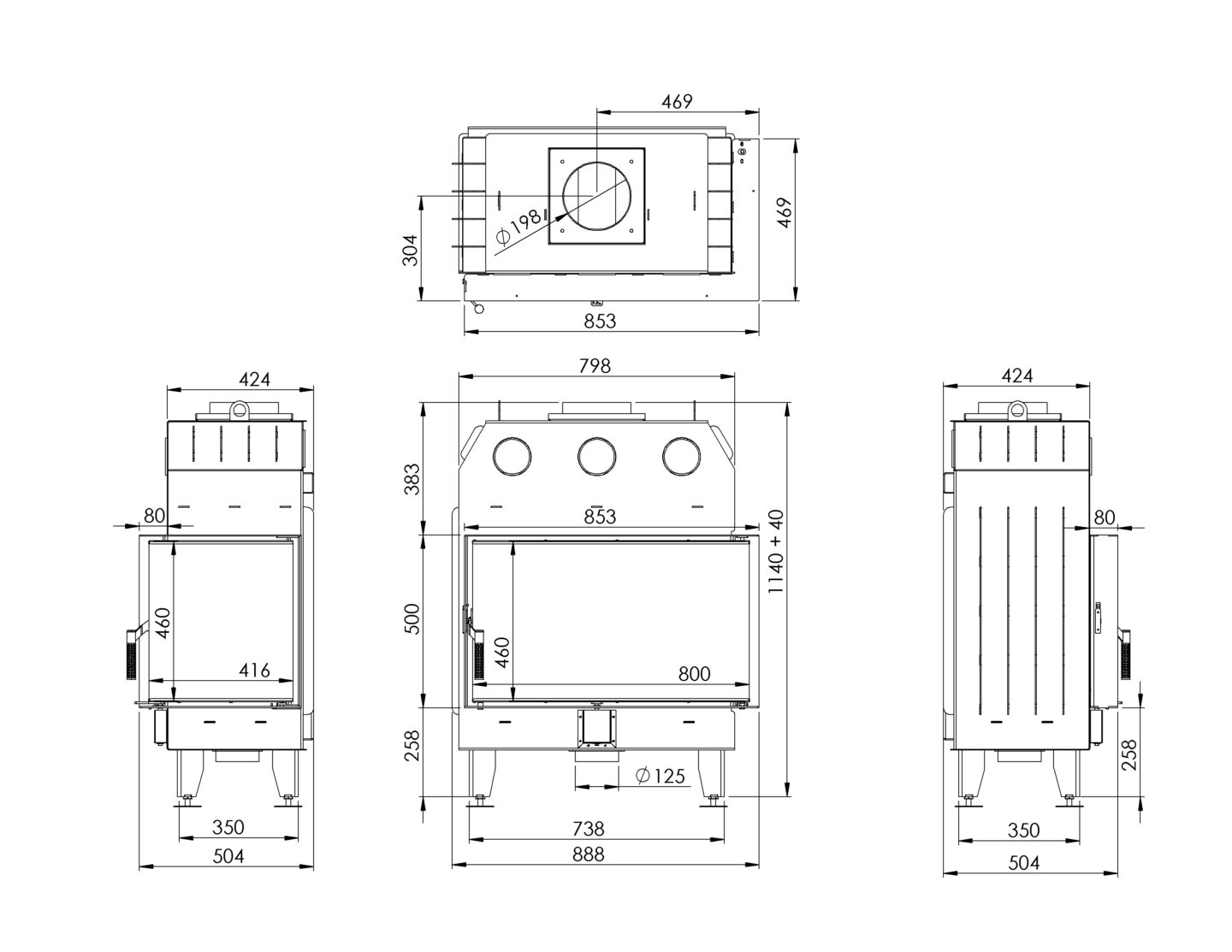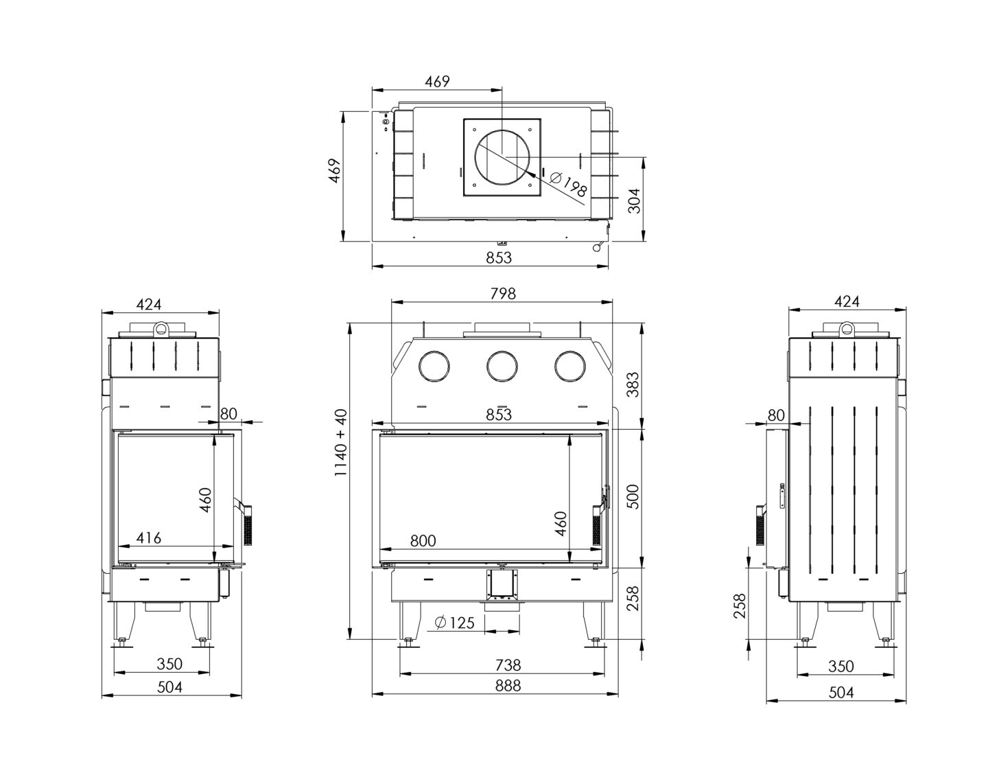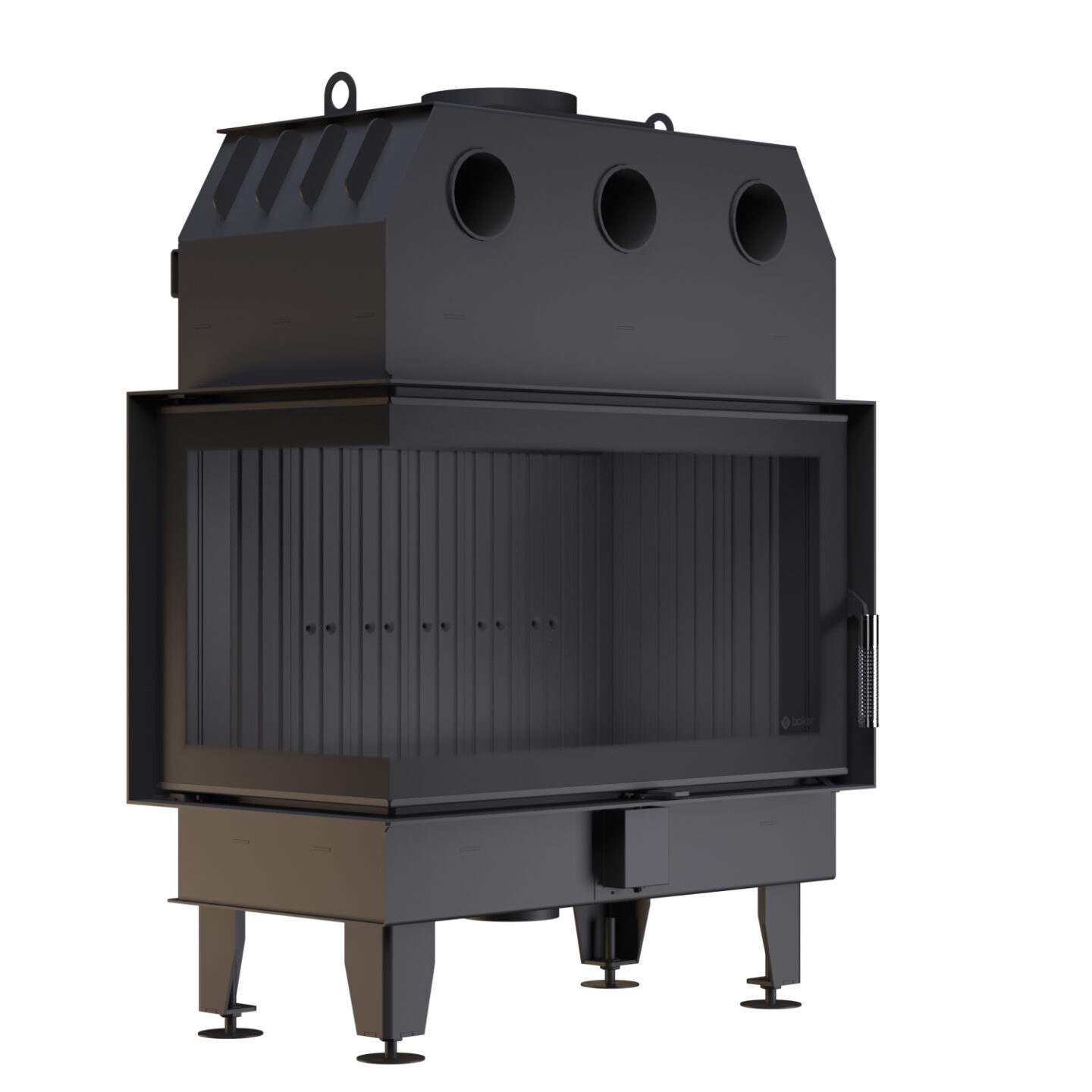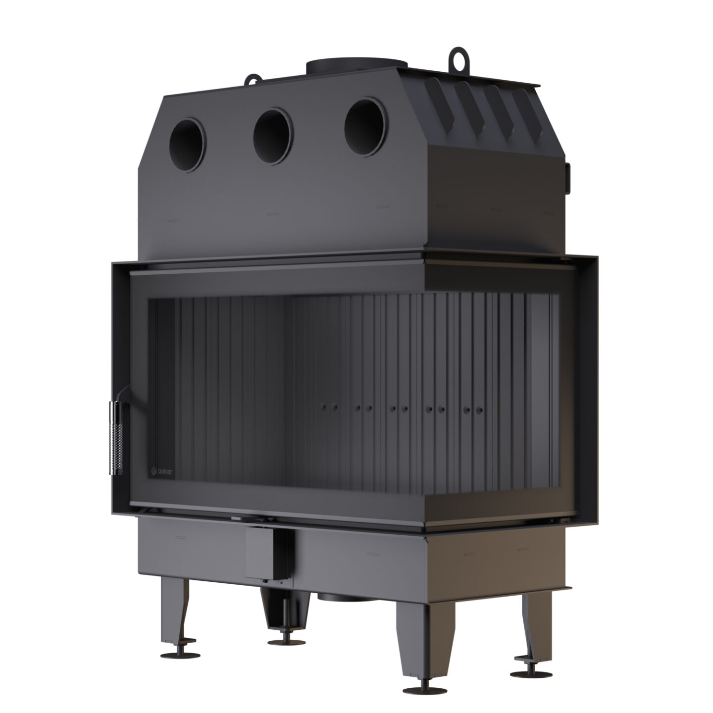 Кутова камінна топка BOKAR 855047 L/R (17,0 kW ) black ceramatex — це конвекційна топка, виготовлена з високоякісної низьколегованої європейської сталі, з кутовим склом та дверцятами бокового відкривання. Топка оснащена інноваційною системою розподілу тепла, удосконаленою системою подачі повітря та функцією самоочищення скла. Камера згоряння футерована високотемпературною керамікою “Ceramatex” власного виробництва, що підвищує ефективність згоряння палива, забезпечує високу температуру горіння та термічну стабільність, а також захищає стінки топки від перегрівання.