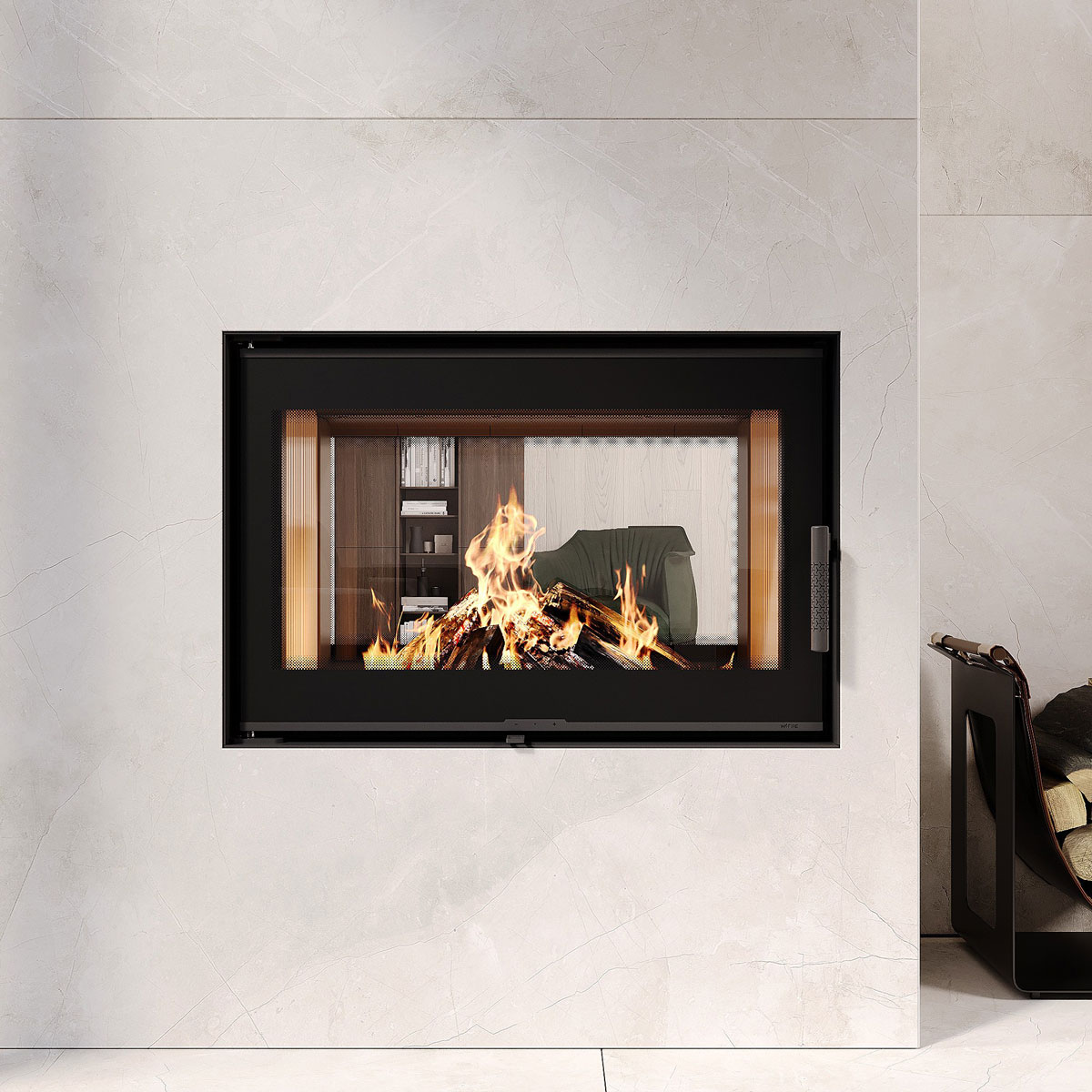 Усередині топки реалізовано ефективну систему подачі повітря з точним регулюванням та повітряною завісою по периметру скла, яка зберігає його чистим навіть під час тривалого горіння.