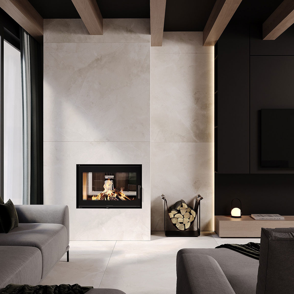 Передня частина топки оснащена термостійким склом Schott Robax, яке витримує температуру до 800°C. Завдяки цьому ви отримуєте безпечний та довговічний камін, який збереже свою прозорість навіть після тривалого використання.