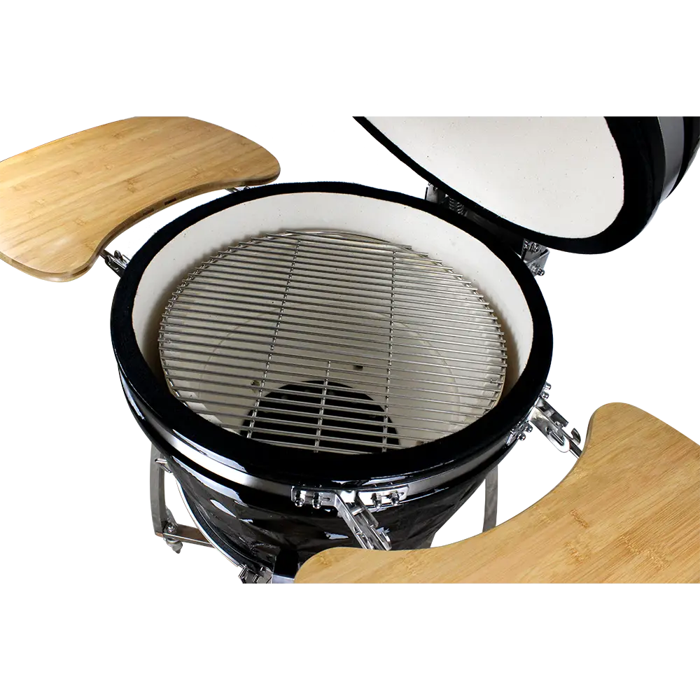 Гриль виготовлений з кераміки, яка забезпечує відмінну теплоізоляцію та рівномірний розподіл температури. Це дозволяє вам готувати соковиті стейки, рибу, овочі та багато іншого з ідеальною пропеченістю, зберігаючи при цьому їхній натуральний смак і аромати. Гриль швидко досягає необхідної температури і підтримує її протягом всього процесу приготування.