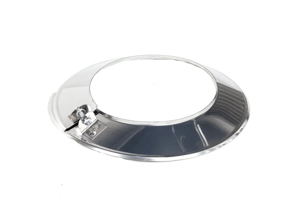 Окапник для димоходу з нержавіючої сталі затискається на димохідній трубі, як одностінний, так і утепленої (сендвіч), декоративно закриває до 50мм зазори при проходженні стін і перекриттів.