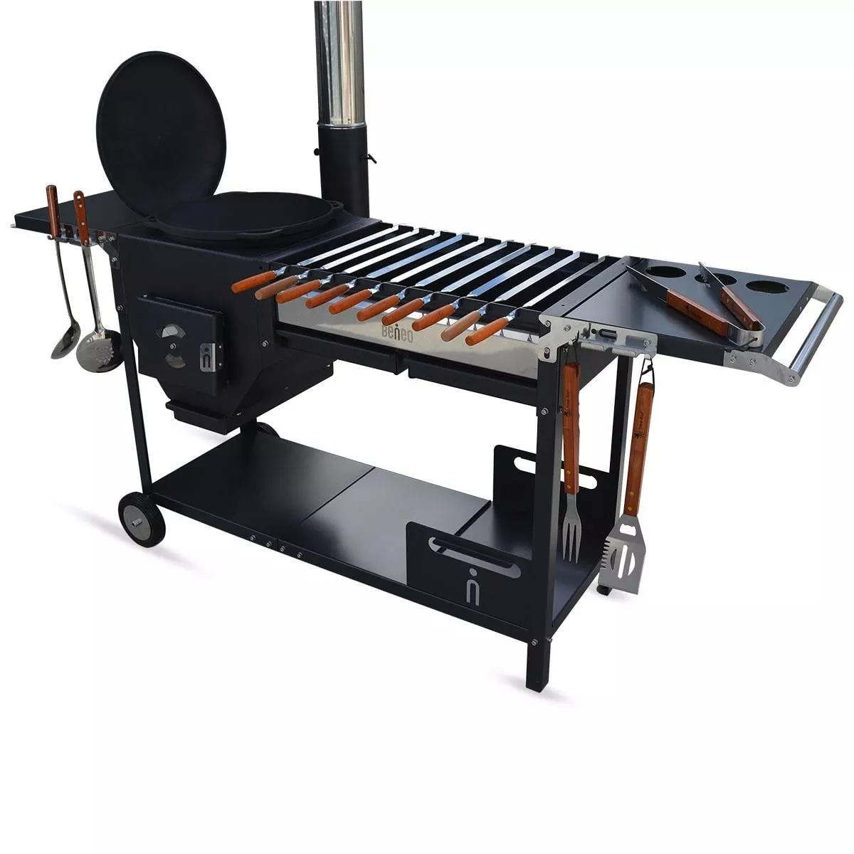 Premium – це надійний і функціональний мангал, який ідеально підійде як для затишних сімейних вечорів, так і для великих компаній. Виготовлений із високоякісних матеріалів, він стане незамінним помічником у приготуванні ваших улюблених страв – від соковитих шашликів до хрустких овочів на грилі.
