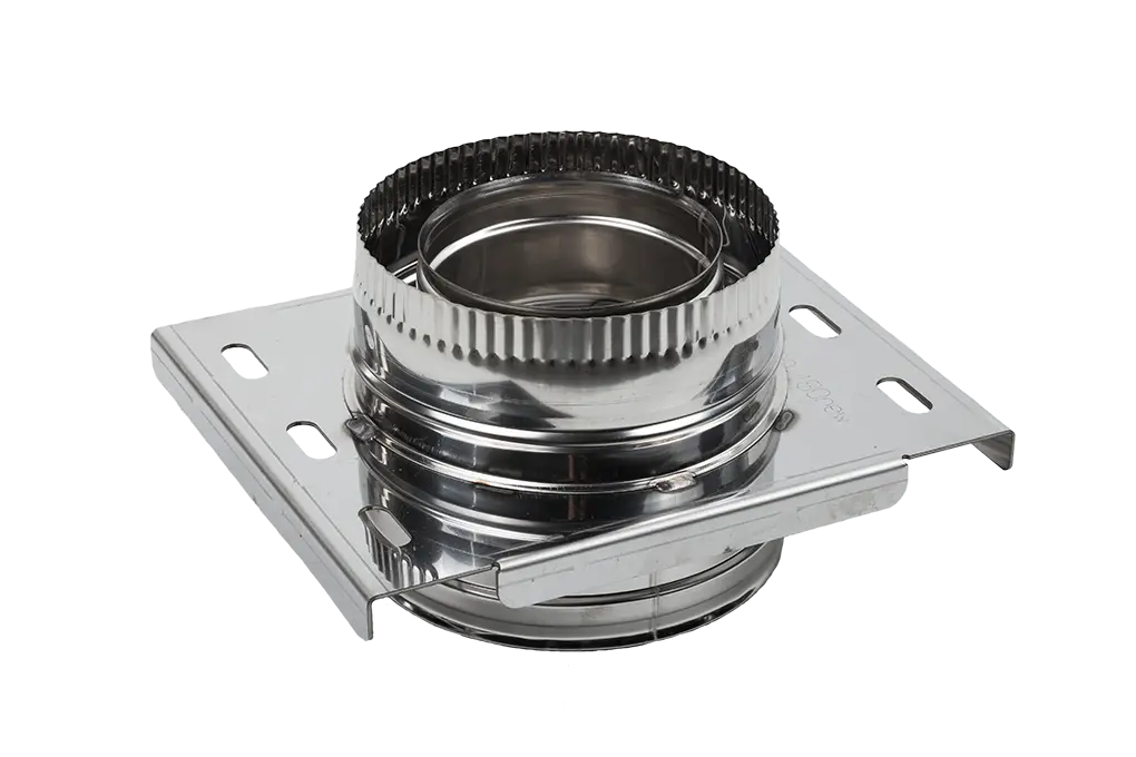 Платформа розвантажувальна для утеплення димоходу (сендвіч) встановлюється на кронштейни з нержавіючої сталі і служить опорою для вертикальної частини димоходу. Зверху на розвантажувальну платформу можна встановити трійник або ревізію, знизу одягається лійка і дека, які при необхідності можна зняти і обслужити димар. Також платформа на кронштейнах встановлюється через кожні 5м висоти димаря з нержавіючої сталі для розподілу ваги конструкції.