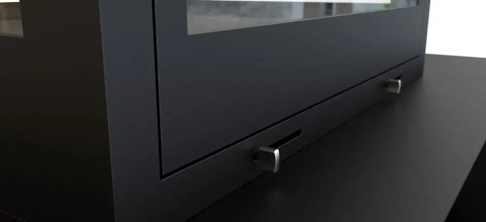 Корпус каміна виконаний із міцної сталі з термостійким покриттям, яке забезпечує довговічність і надійність навіть при інтенсивному використанні. -