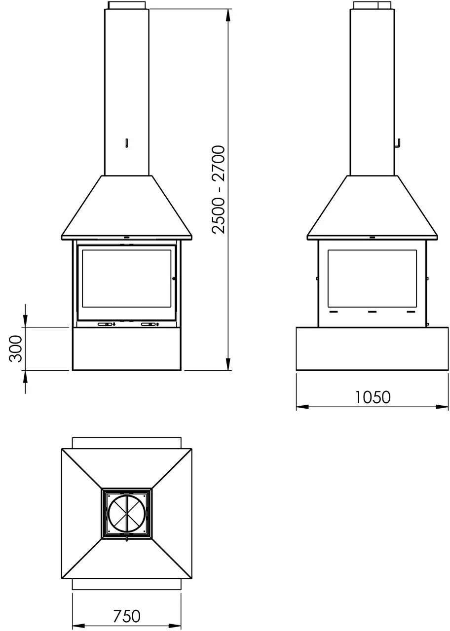 Камін кріпиться до стелі, створюючи ефект легкості та ширяння. Така конструкція не тільки естетично приваблива, але й максимально функціональна.
