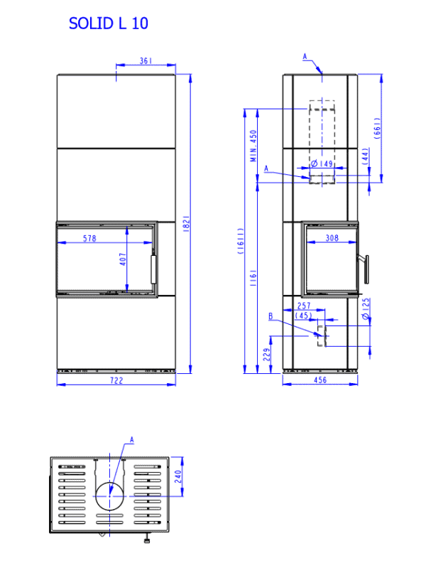 - Кутове скло: спеціальне термостійке скло з покриттям, яке запобігає забрудненню й забезпечує ідеальну видимість полум’я.