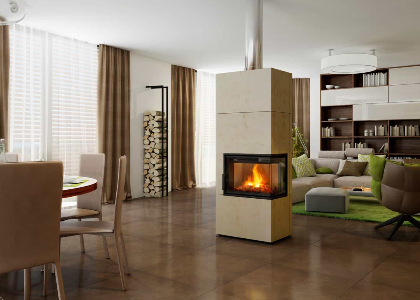 SOLID R – кахельний камін із правим кутовим склом Romotop: вишуканий комфорт та ефективне тепло