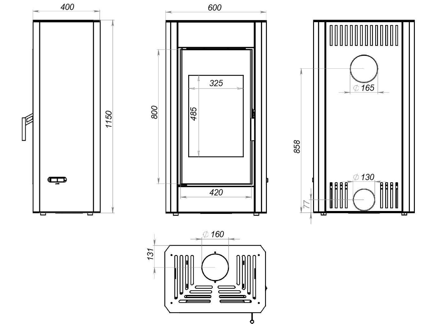 Корпус печі виготовлений з низьколегованої європейської сталі, футерування камери згоряння виконано з високотемпературної кераміки Ceramatex. Ця кераміка витримує температуру до 1300°C і підвищує ефективність горіння.